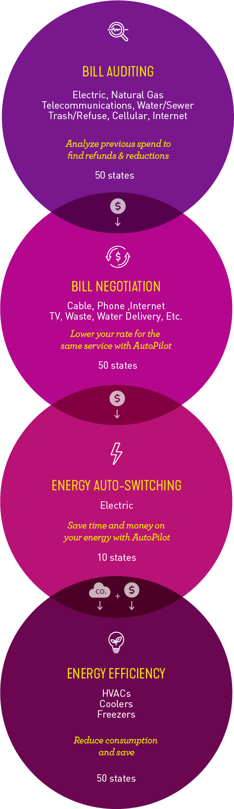 Did you know you are likely overpaying for many of the services you use every day? How do you know if spending hours on the Internet or on the phone trying to get a better deal will even work? With AutoPilot, our smart technology and team of negotiation experts ensure you’re not being overcharged. We work to reduce your bills so you can sit back and enjoy the savings.